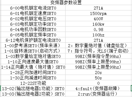 液壓泵同步電機(jī)額定電流為271A,電機(jī)轉(zhuǎn)速1500轉(zhuǎn),額定功率160KW,根據(jù)電機(jī)的型號(hào),我司選擇了額定電流300A的160KW變頻器。